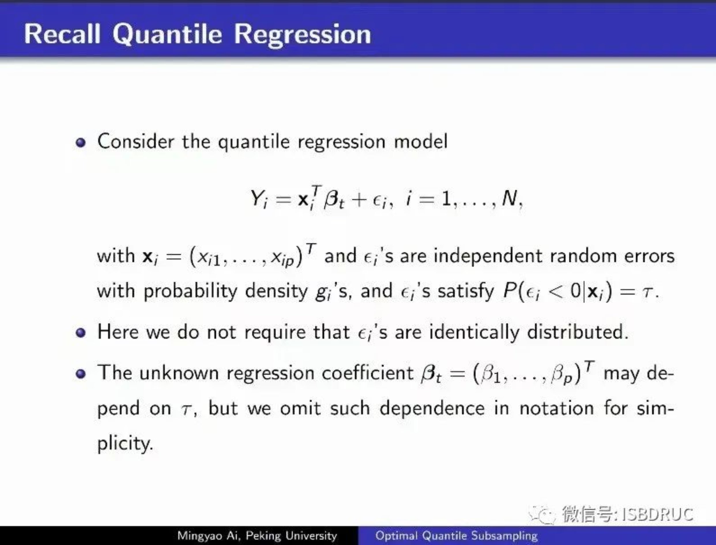 2022年4月15日,北京大学艾明要教授应我院邀请进行了以“Optimal Subsampling for Large-scale Quantile Regression”为主题的讲座。