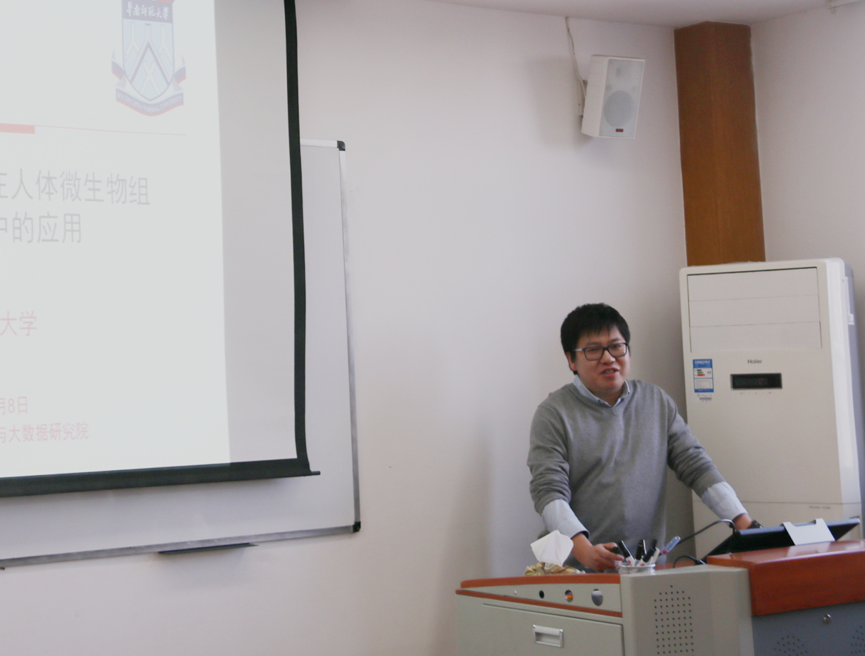 2019年11月8日上午,华南师范大学生命科学学院王璋教授在我校崇德西楼702会议室为我校师生进行了以“多组学大数据整合在人体微生物组学和精准医学中的应用”为主题的报告会。
