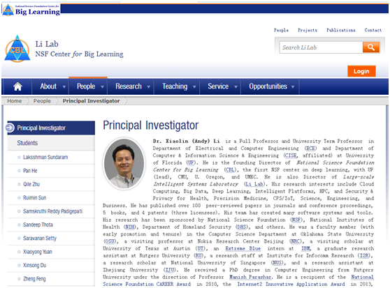 Dr. Xiaolin (Andy) Li is a Full Professor and University Term Professor in Department of Electrical and Computer Engineering (ECE) and Department of Computer & Information Science & Engineering (CISE, affiliated) at University of Florida (UF). He is the founding Director of National Science Foundation Center for Big Learning (CBL), the first NSF center on deep learning, with UF (lead), CMU, U. Oregon, and UMKC. He is also Director of Large-scale Intelligent Systems Laboratory (Li Lab).
