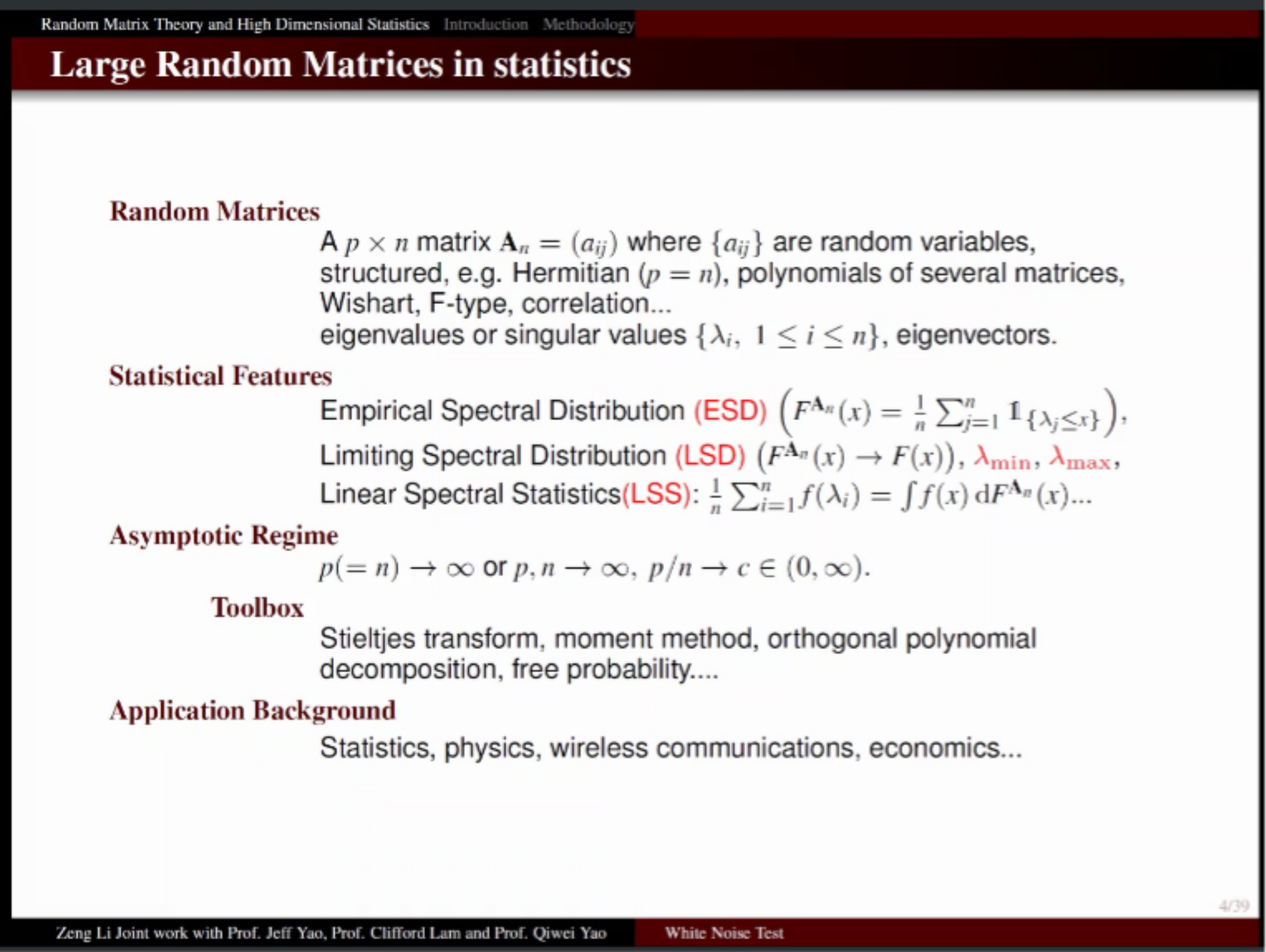 2021年10月22日上午,南方科技大学李曾副教授应我院邀请在线进行了以“On testing for high dimensional white noise”为主题的报告会。