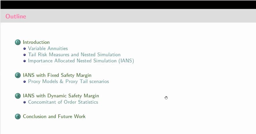 2020年6月12日上午,加拿大滑铁卢大学Ben Feng助理教授应我院邀请在线进行了以“Dynamic Importance Allocated Nested Simulation for Variable Annuity Risk Measurement”为主题的报告会。