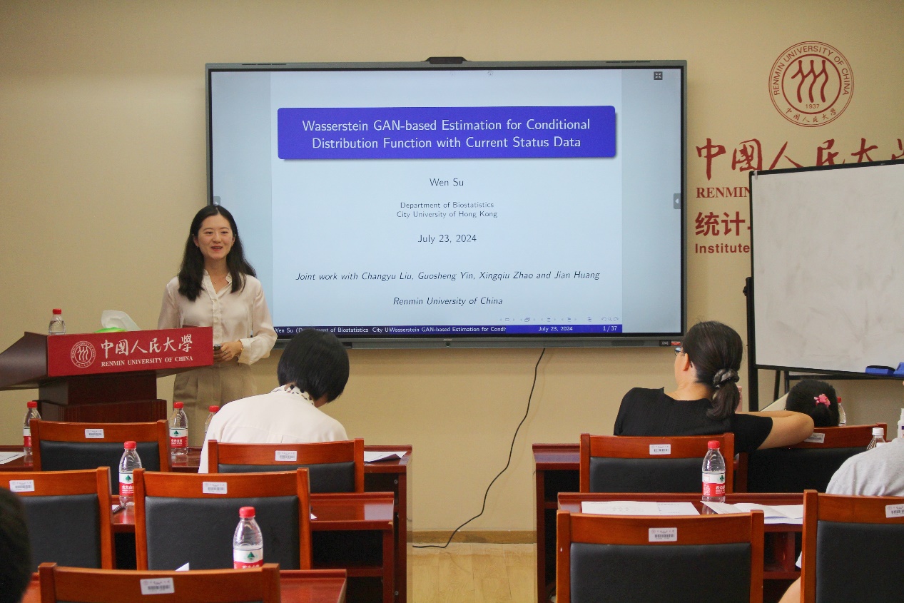 香港城市大学苏雯助理教授作了题为“Wasserstein GAN-based Estimation for Conditional Distribution Function with Current Status Data”的报告。