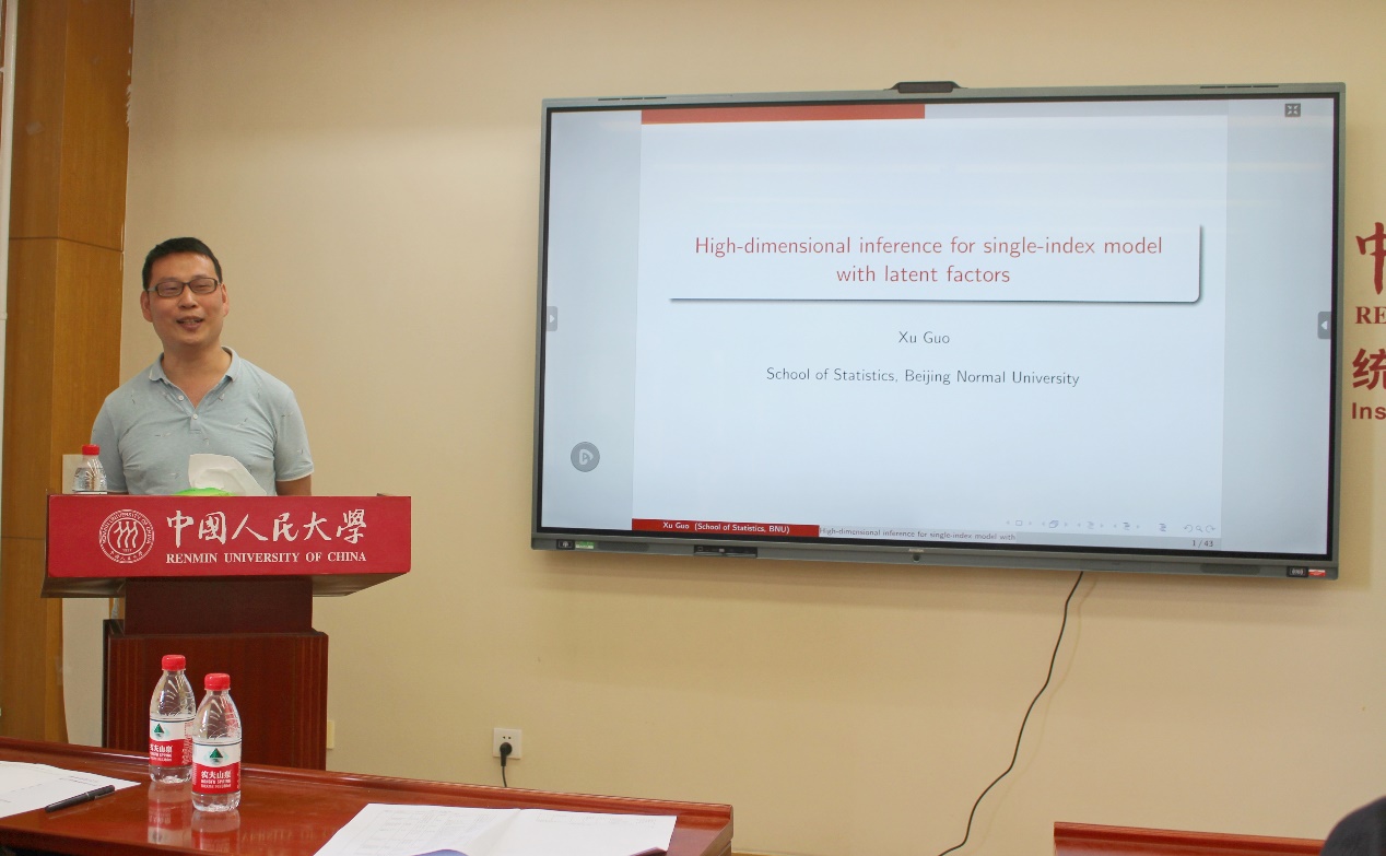北京师范大学郭旭教授作了题为“High-Dimensional Inference for Single Index Models with Latent Factors”的报告。