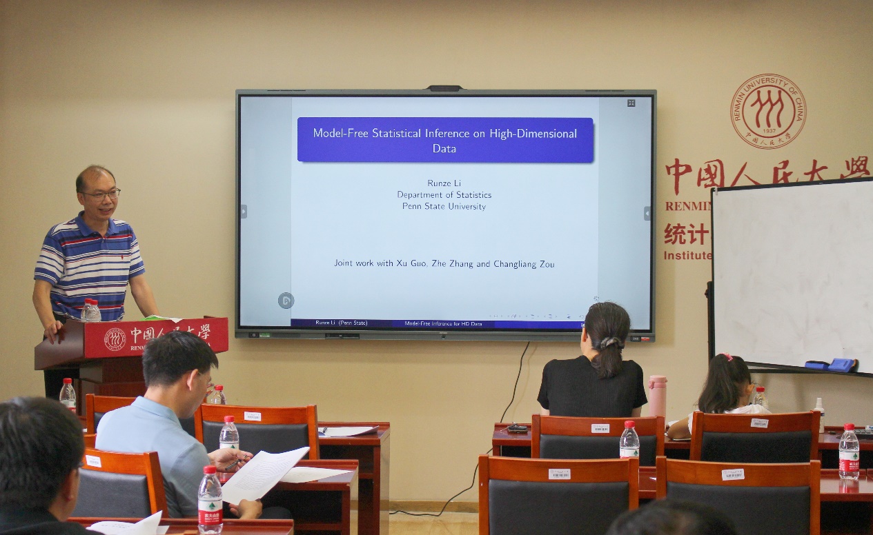 上午,宾夕法尼亚州立大学李润泽教授作了题为“Model-Free Statistical Inference on High-Dimensional Data”的报告。