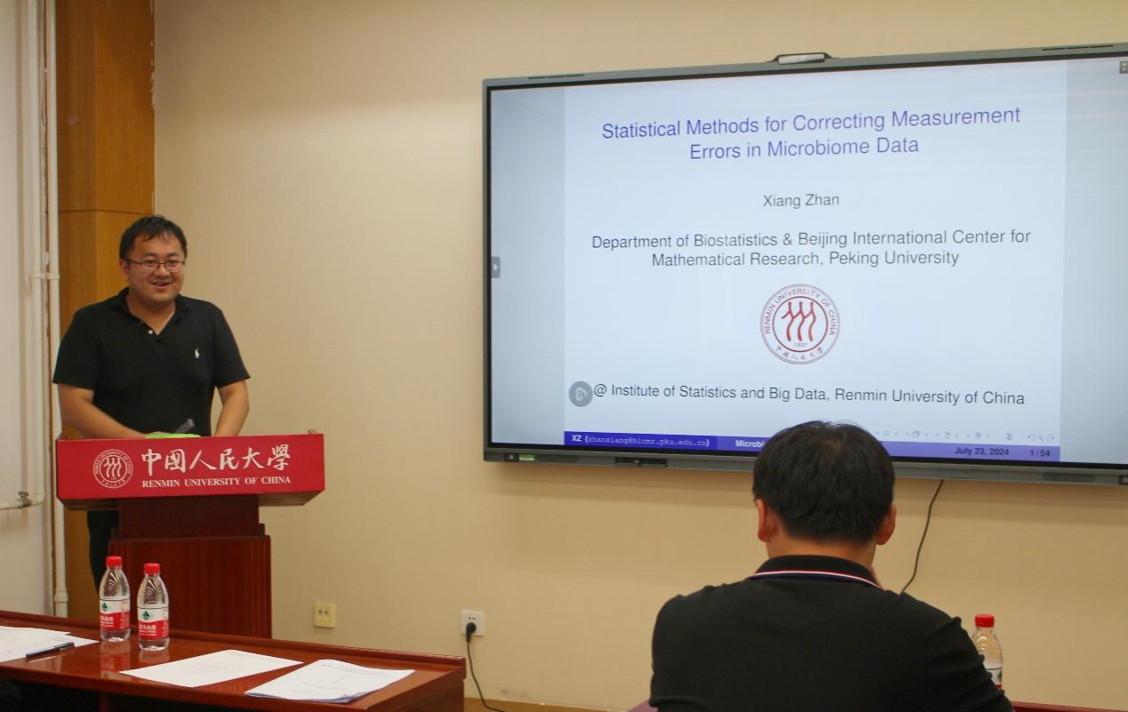 北京大学占翔副教授作了题为“Statistical Methods for Correcting Measurement Errors in Microbiome Data”的报告。