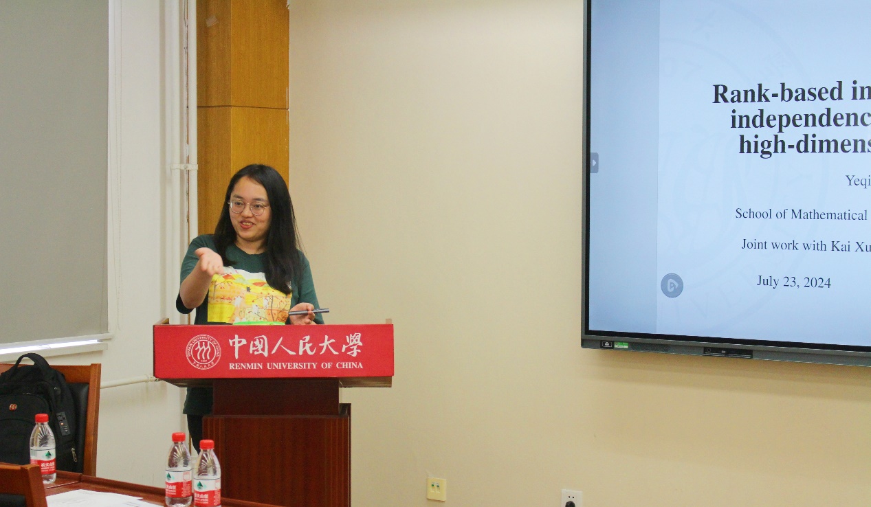 同济大学特聘研究员周叶青老师作了题为“Rank-Based Indices for Testing Independence Between Two High-Dimensional Vectors”的报告。