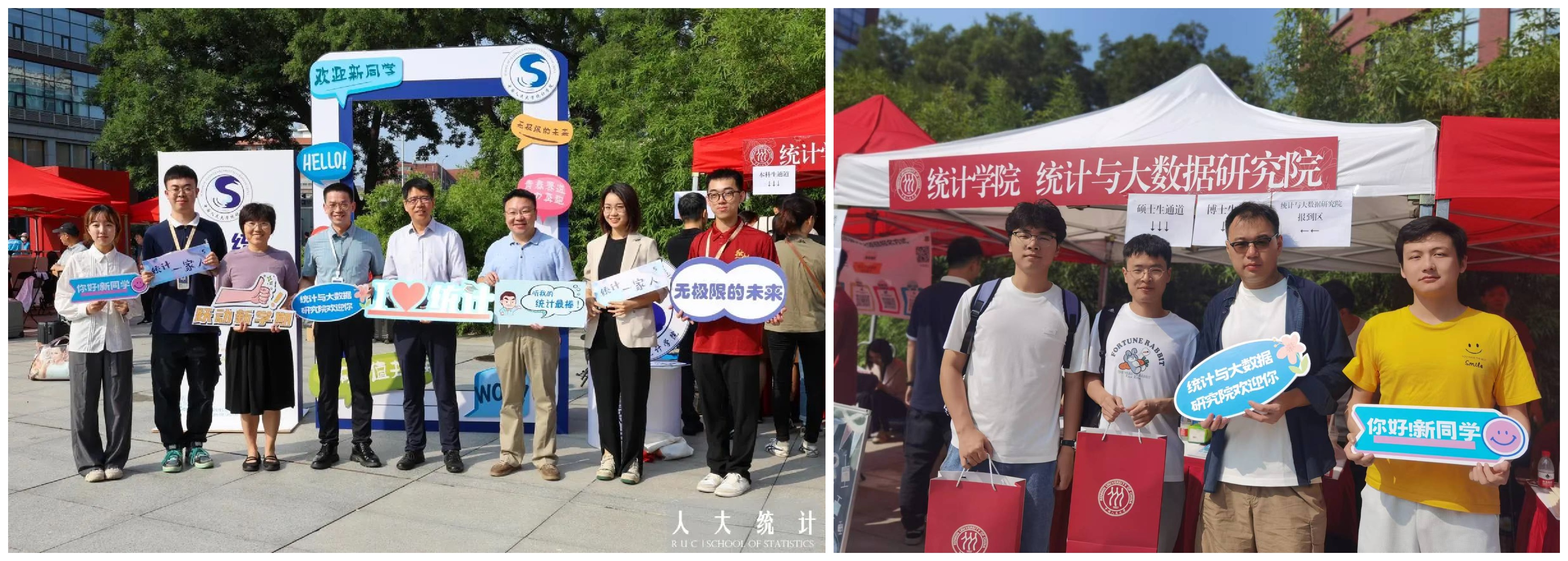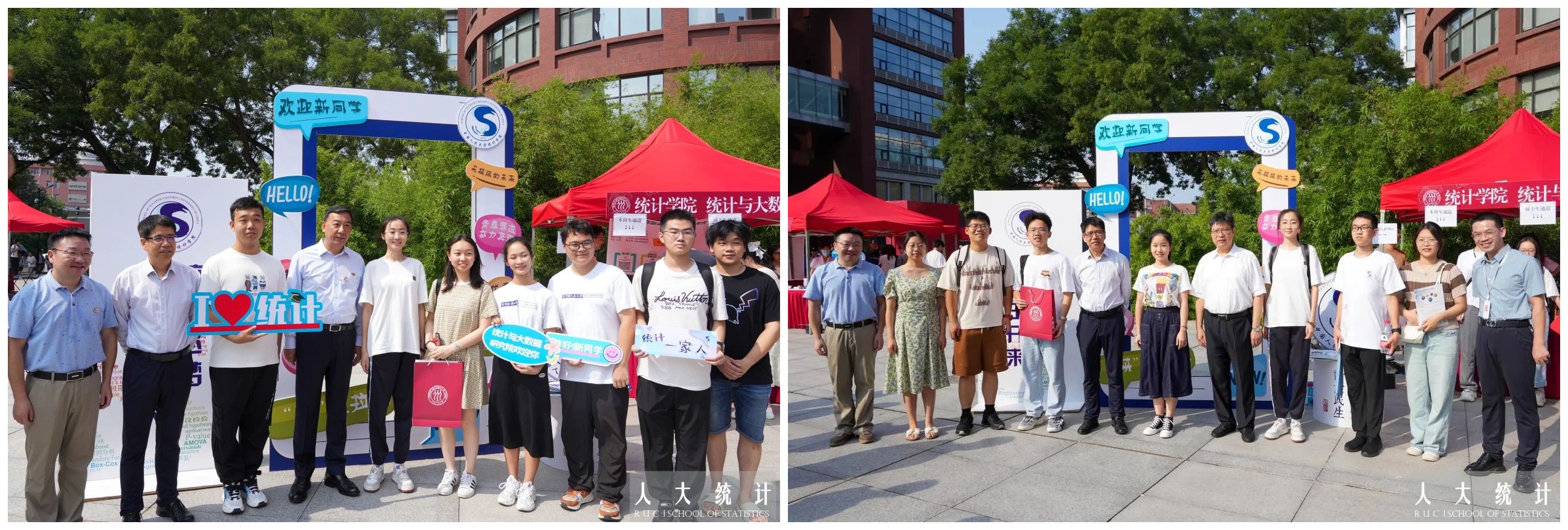 统计学院党委书记孟生旺,51吃瓜网 院长朱利平,统计学院党委副书记、51吃瓜网 副院长王志丹等院领导及2023级新生班主任张宇谦、刘阳先后来到展台处,与新生、新生家长及志愿者亲切互动。